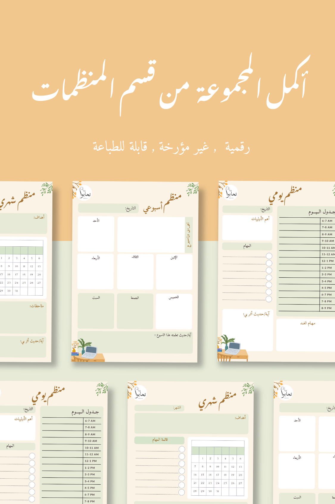 الملف عالي الجودة (PDF) بصيغة CYMK ويحتوي على جدول لتدوين المهام اليومية والأولويات والمواعيد والملاحظات